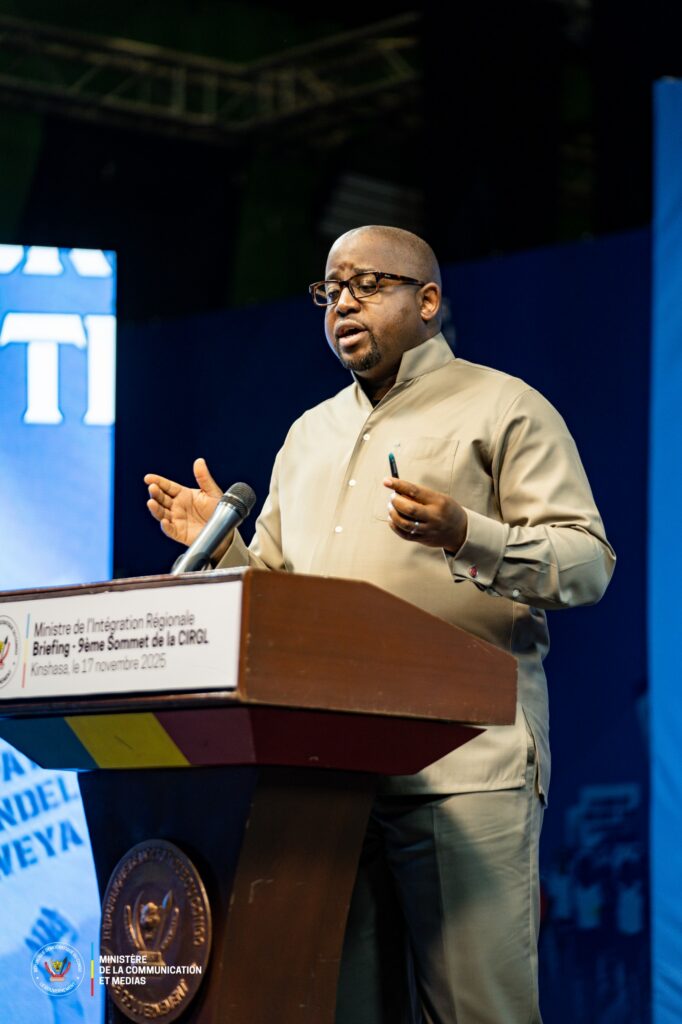 Le Ministre de la Communication et Médias, Porte-Parole du Gouvernement, Patrick MUYAYA KATEMBWE, et son collègue de l’Intégration régionale, Floribert ANZULUNI ISILOKETSHI, ont conjointement animé, ce lundi 17 novembre 2025, un Special Briefing Presse au Studio Maman Angebi de la RTNC.